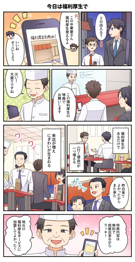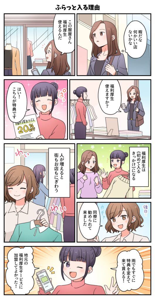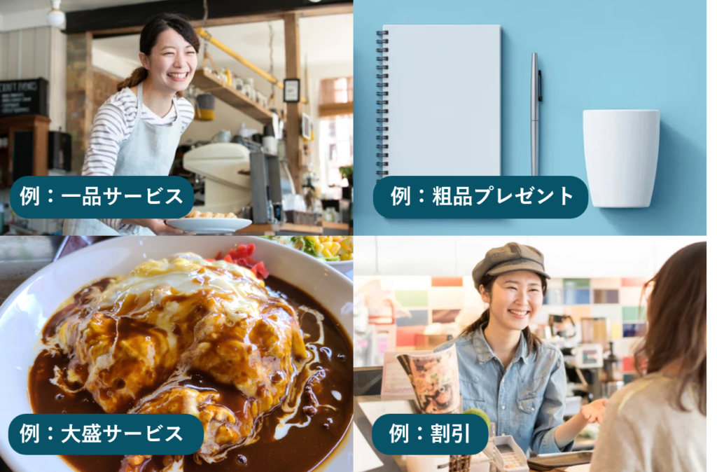 お店の方に見せるだけで、お店ごとの特典を得ることが出来ます。